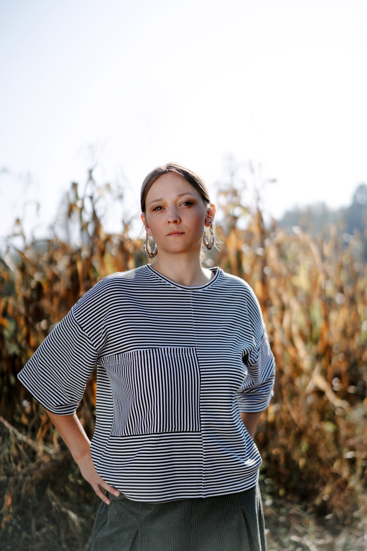 Bluzka o prostym pudełkowym fasonie z krótki rękawem