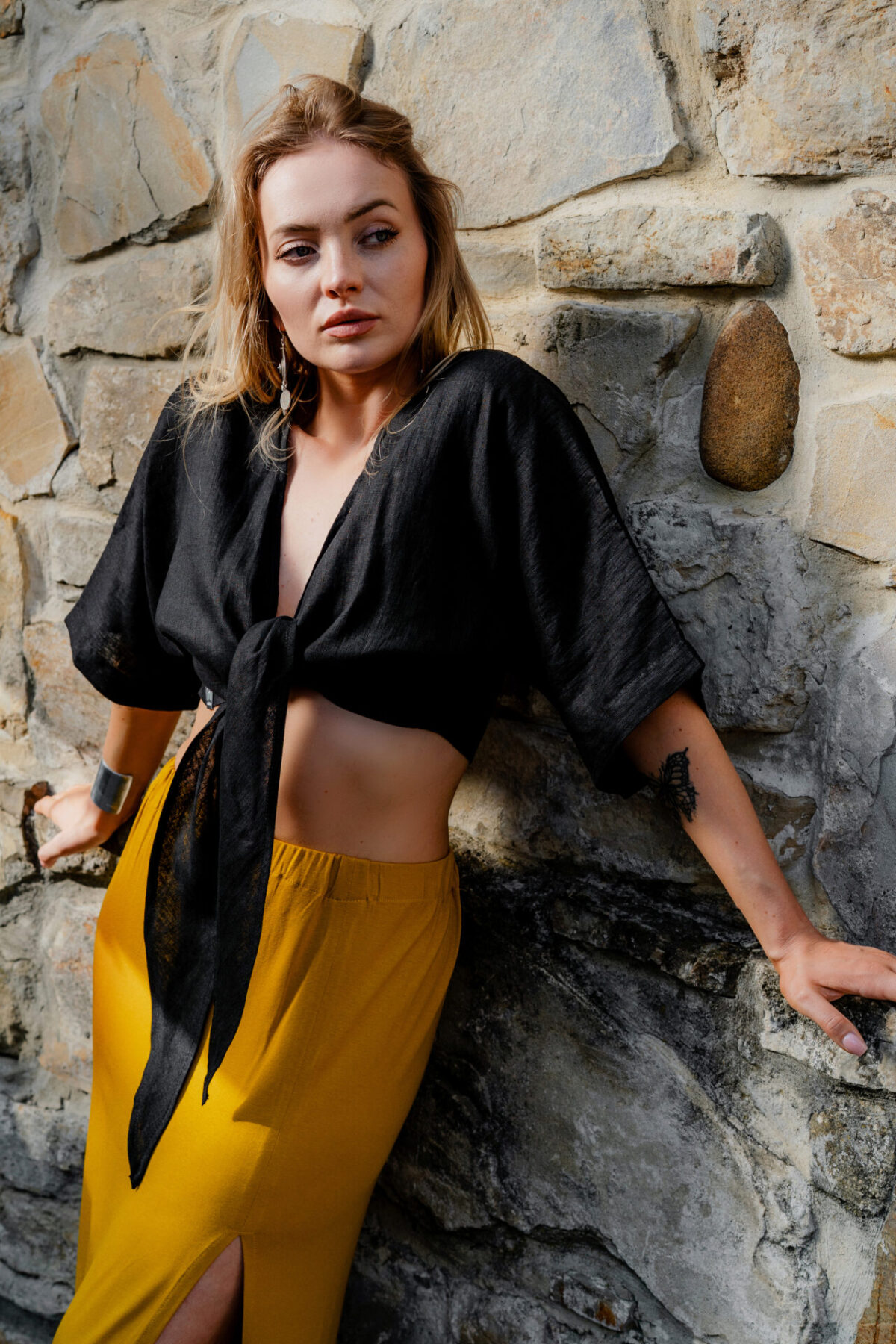 Piękny lniany top w kolorze czarnym uszyty z mięciutkiego lnu