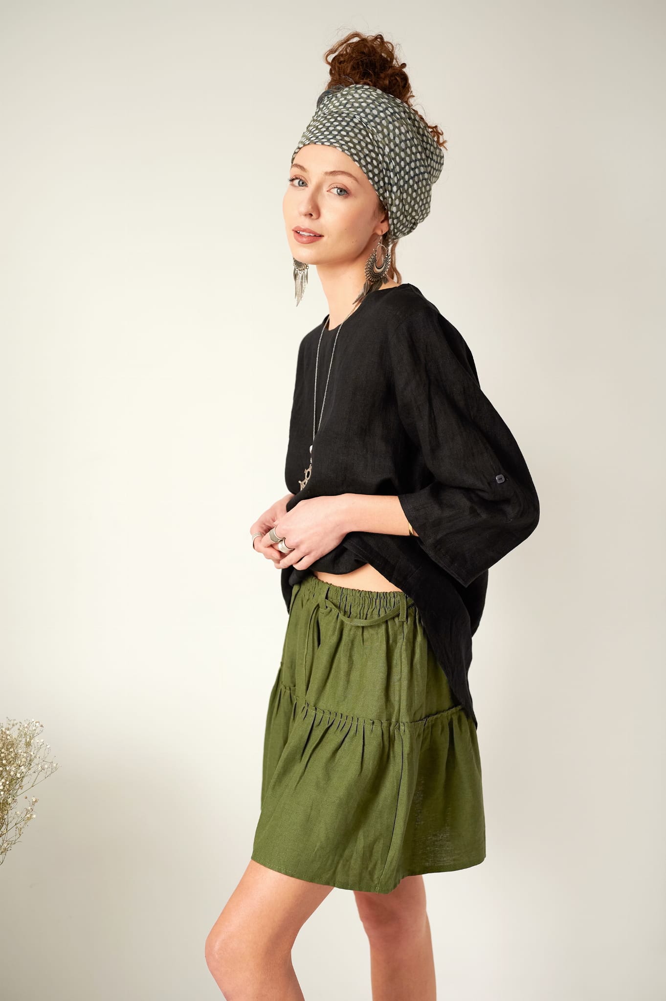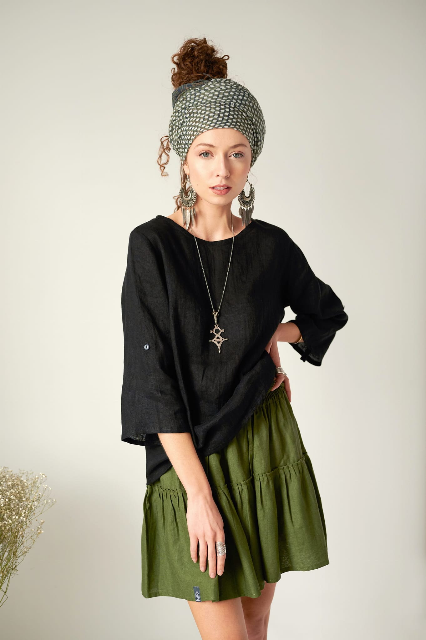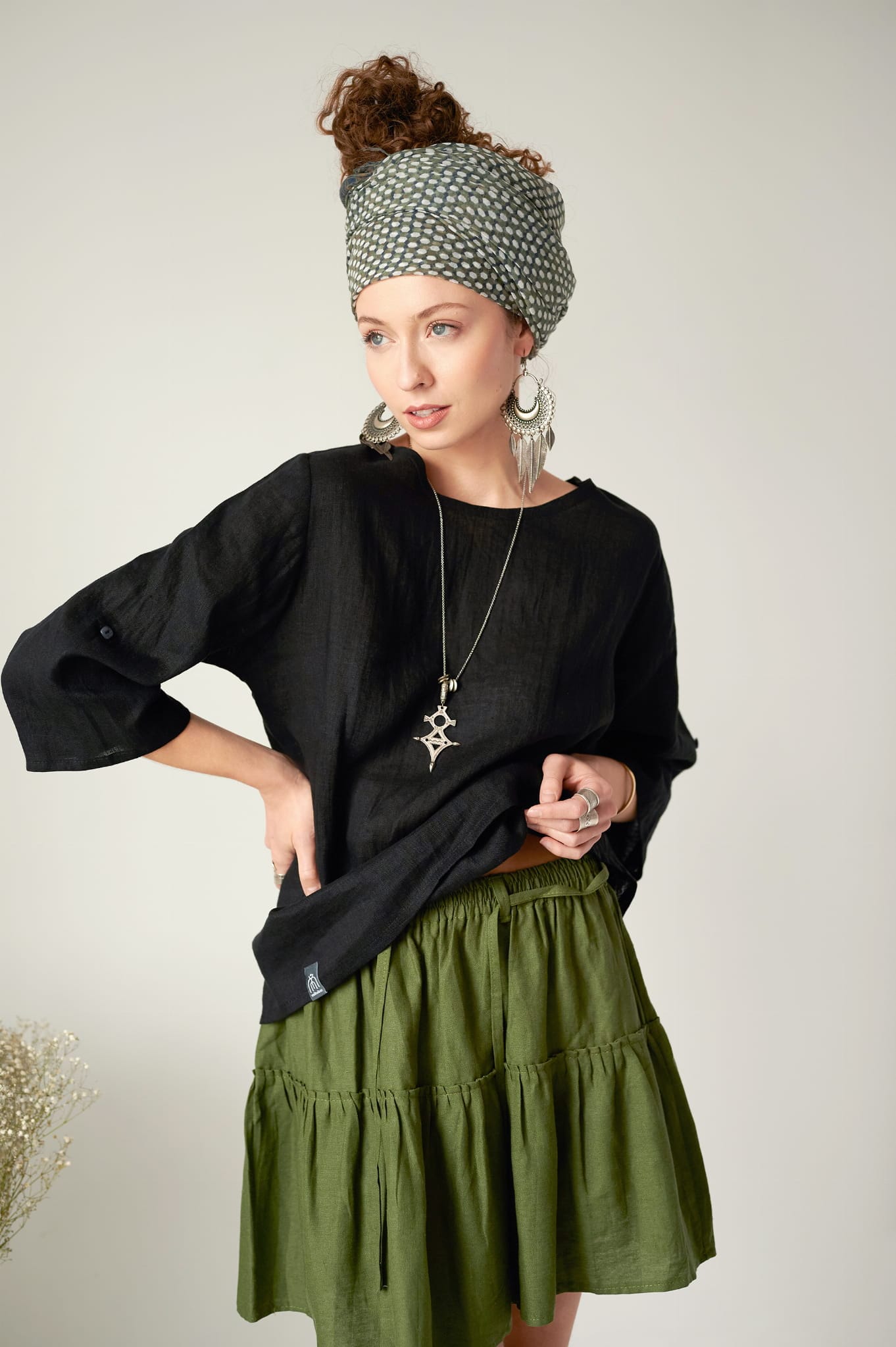 - fason – bardzo wygodny, luźny, rękawy bluzki można podwijać i zapinać na guziki, bluzka świetnie wygląda w zestawieniu ze spodniami jak i ze spódnicami, kreacja dowolna:)