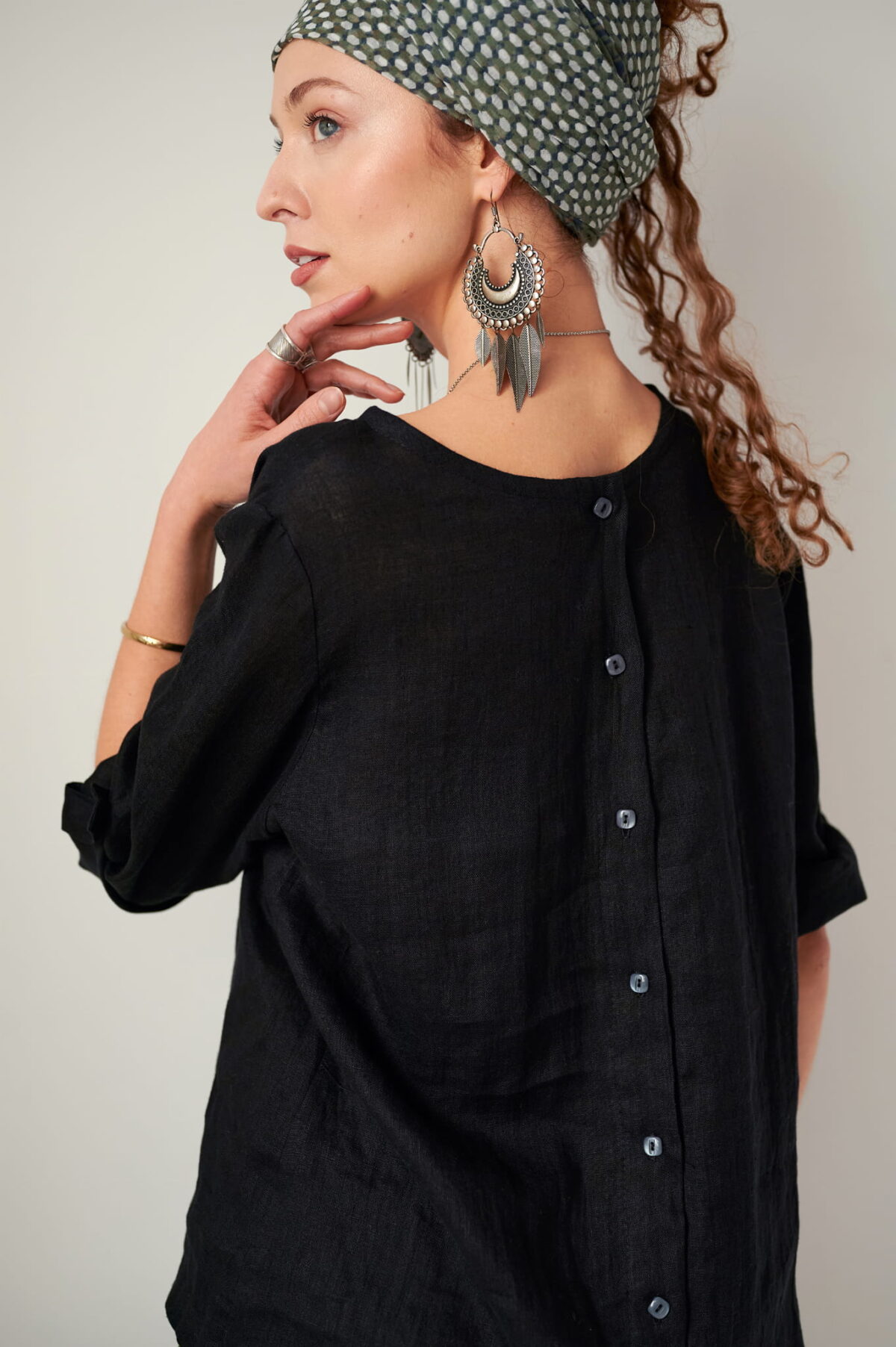 Niezwykle wygodna bluzka z rękawem 3/4 uszyta z miękkiego lnu