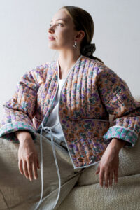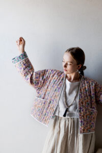 Krótkie pikowane kimono z kieszeniami