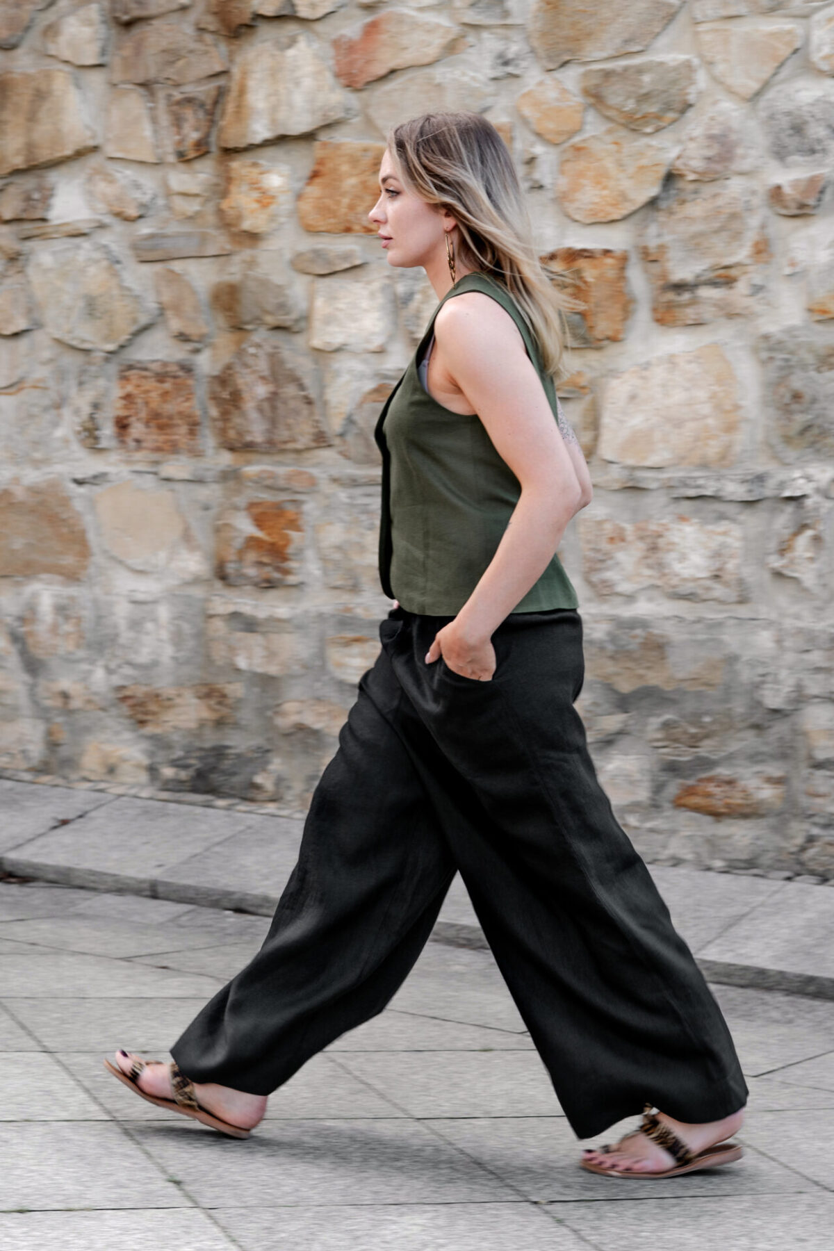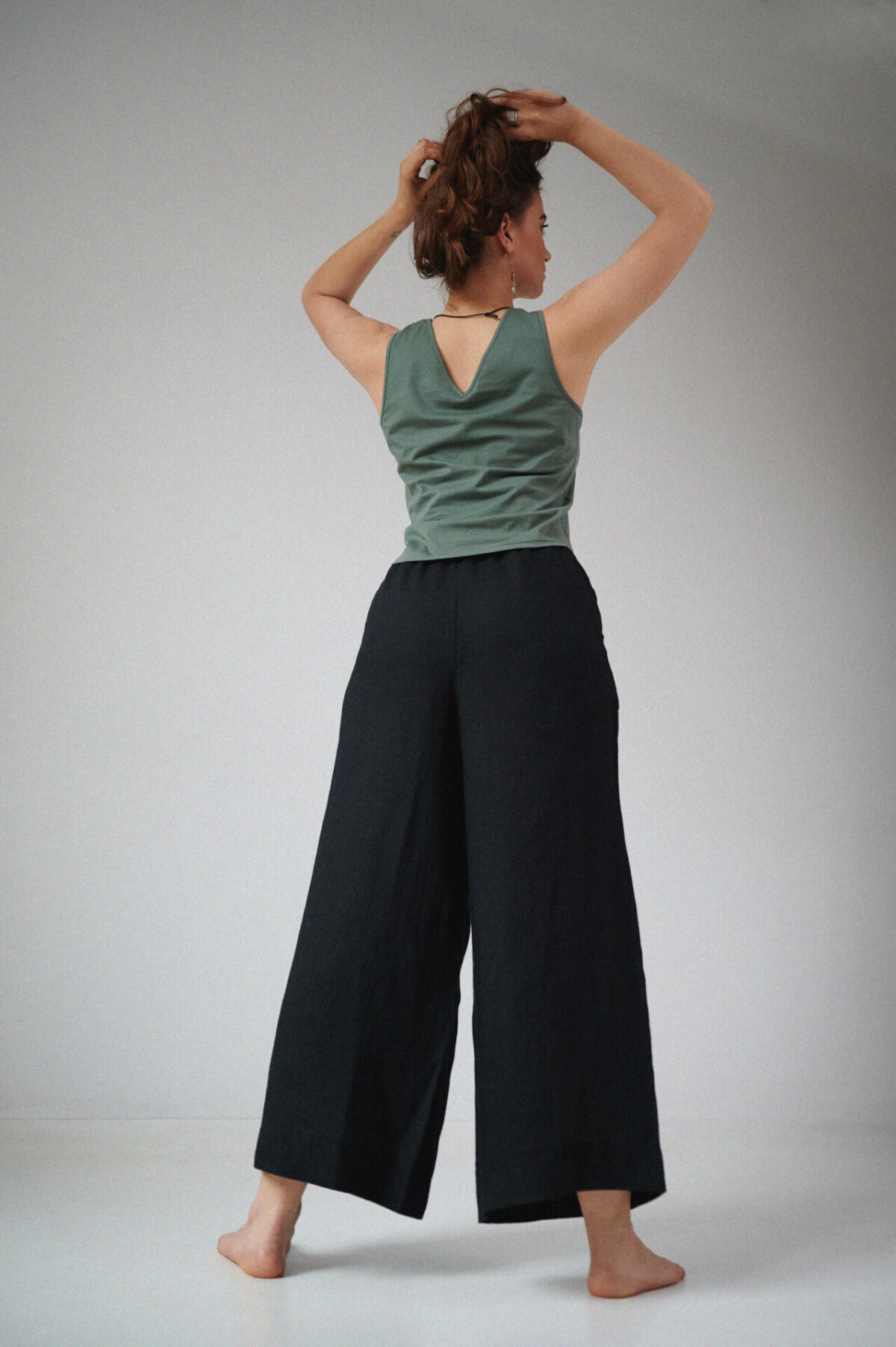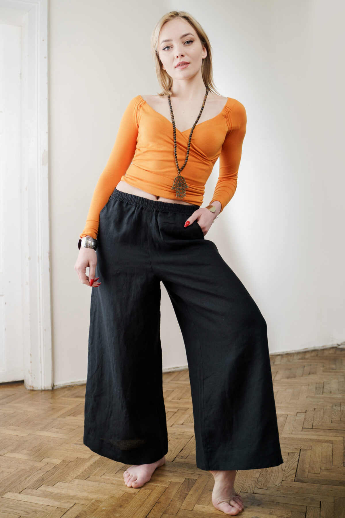 Spodnie lniane z delikatnie rozszerzanymi nogawkami