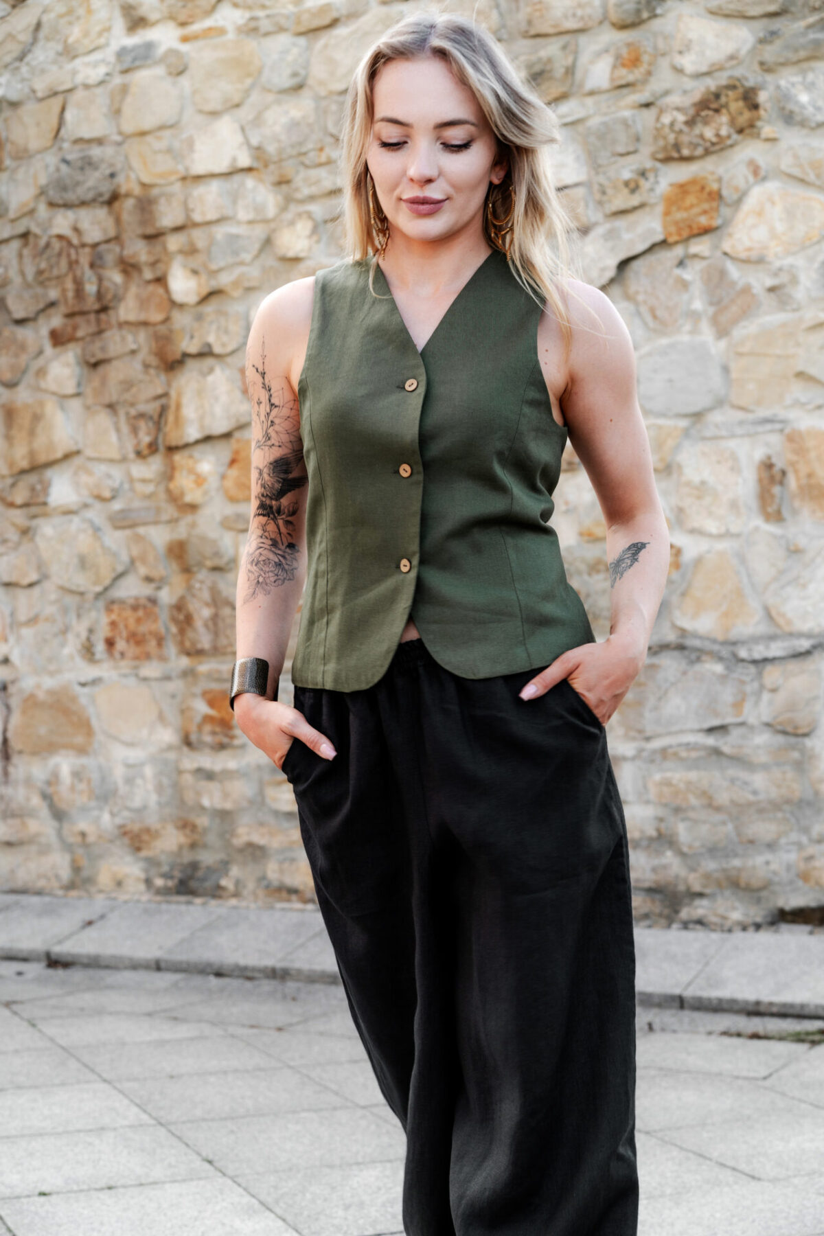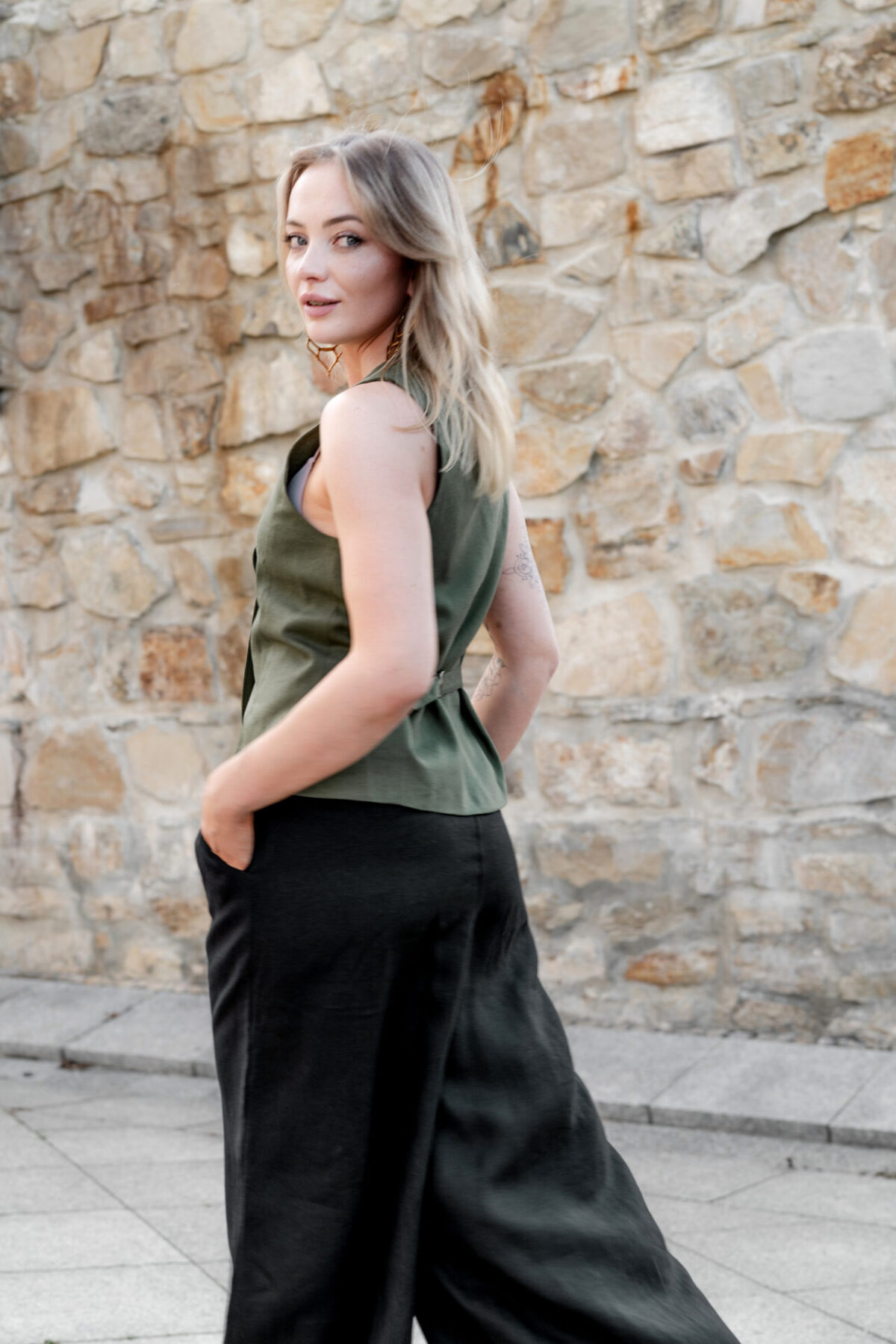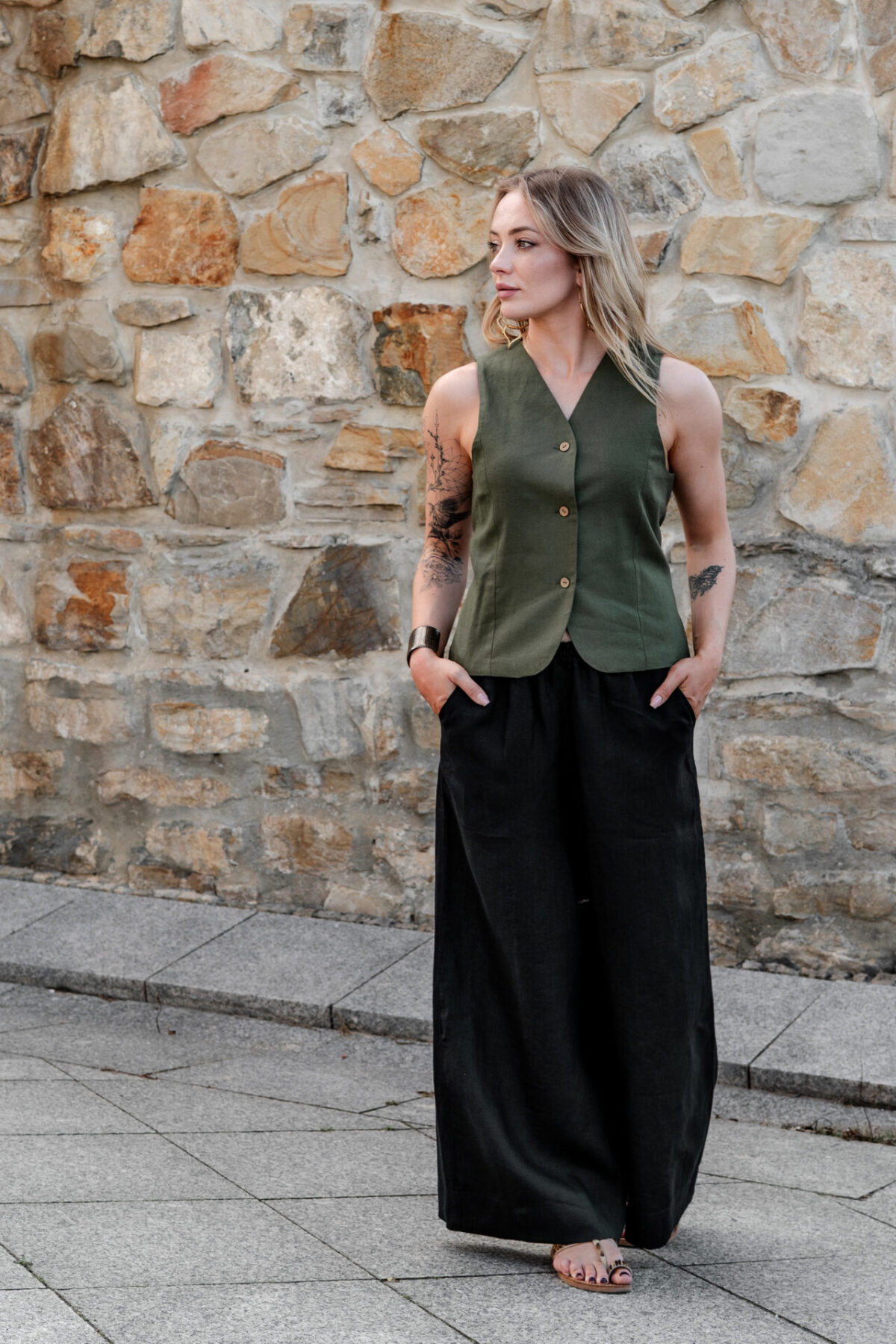 Spodnie lniane z delikatnie rozszerzanymi nogawkami