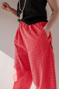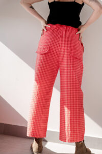 Spodnie o super wygodnym kroju uszyte z tkaniny bawełnianej w kratę (kolory: pomarańcz, czerwień)